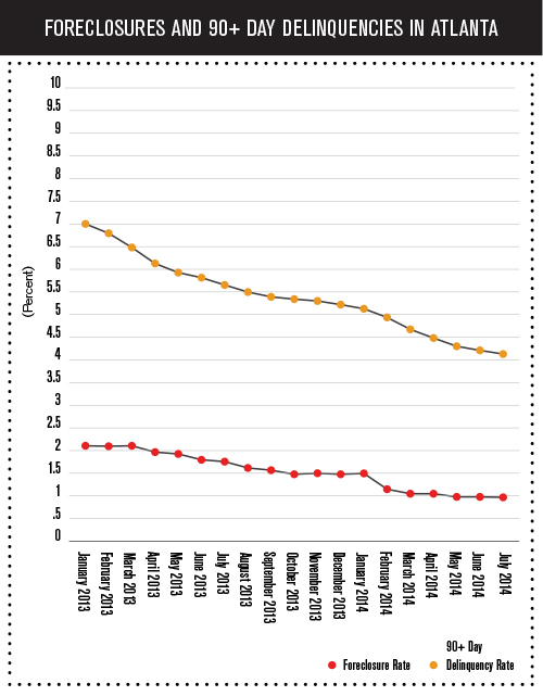 In January 2013, Atlanta foreclosure and 90-plus day delinquency rates were nearly double what they are today, confirmed CoreLogic in its latest report.
