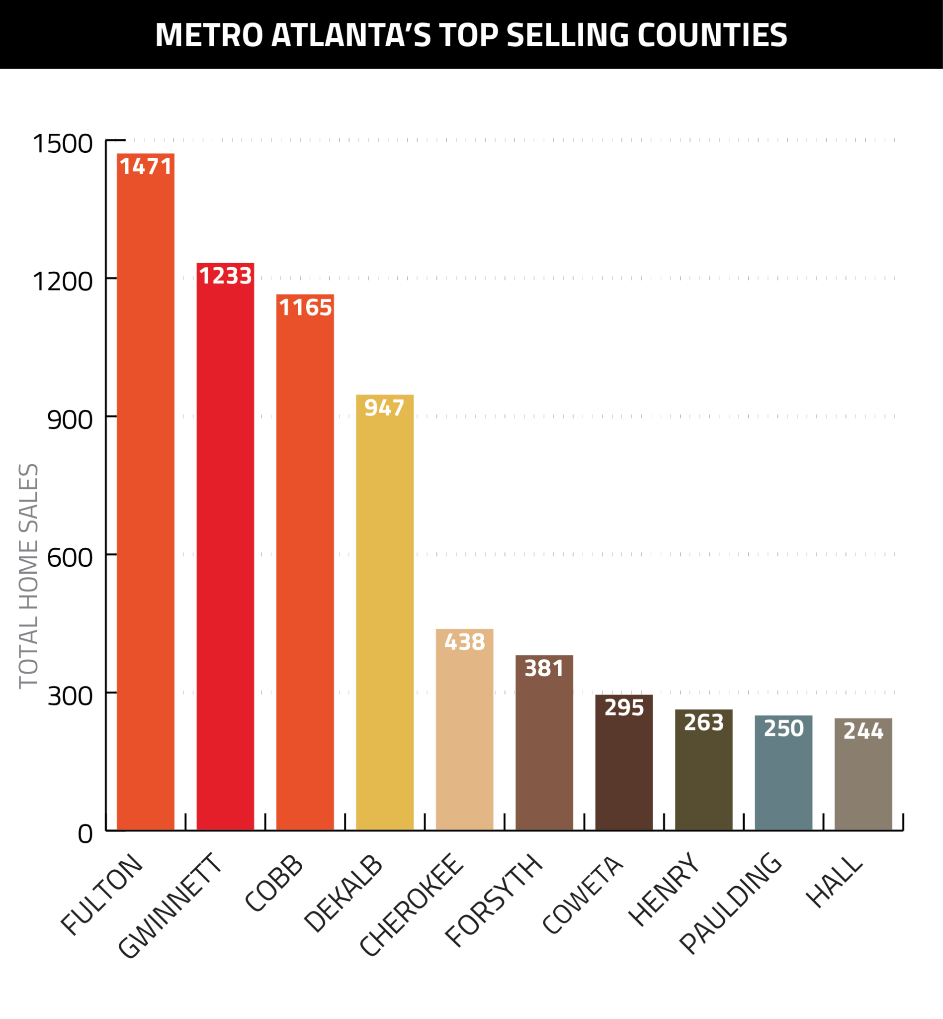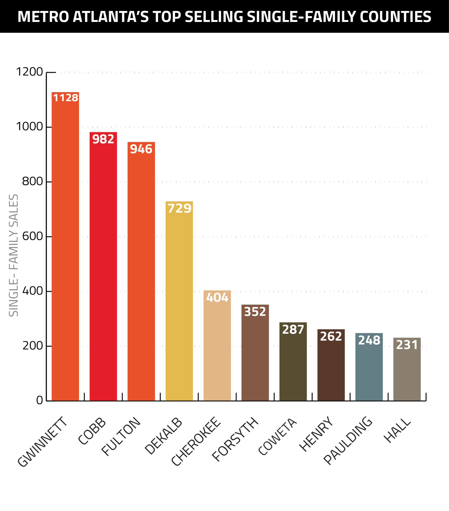 Propelled by a 33.1 percent increase in sales, Gwinnett was easily in the No. 1 slot, though second-place Cobb also saw its sales rise 25.3 percent from last year. Other notable increases occurred in DeKalb (12.02 percent), Hall (30.7 percent) and Paulding (32.8 percent).