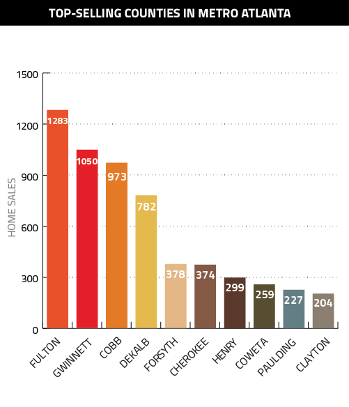 Where in Metro Atlanta’s vast terrain were home sales the highest?