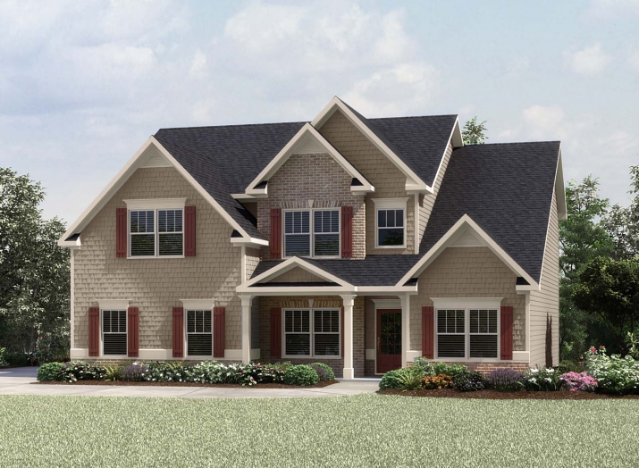 The vignette model home, featuring the Parkside floor plan at Carter Grove: The Terrace, has four bedrooms, three baths, a spacious kitchen, a two-story family room and a master suite. The homes at Carter Grove: The Terrace are priced from $216,900 to $364,900.