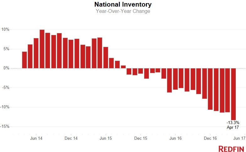 The lack of inventory is concerning to some realtors across the country as it is limiting sales. The lack of new construction is constraining inventory with homebuilders putting up 18 percent fewer homes than the 25-year average. Most cities are seeing booms in office buildings, rather than housing, and if housing is built it is mainly apartment buildings, according to Glenn Kelman, CEO of Redfin.