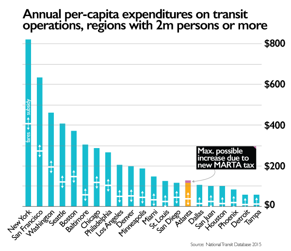 Atlanta’s public transportation has needed support for a number of years. And with the MARTA system seeing a significant increase in both usage and strain in 2017 after the I-85 shutdown, the 2016 referendum that allowed a half-cent sales tax increase to raise $2.5 billion for transit over 40 years is just in time.