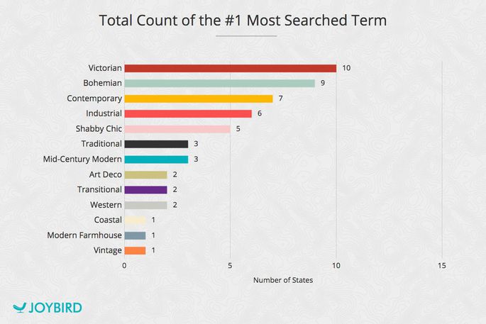 However, if ornate crown-molding and button-backed chairs aren’t necessarily your cup-of-tea, there is no need to fret. Joybird’s findings also suggest that the popularity of any given style varies significantly nationwide.