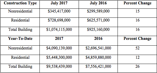 By the numbers, Atlanta spent $345.4 million in nonresidential construction activity in the past month alone – a 15 percent increase from the $299.5 million that was spent in July 2016. Residential spending saw similar growth at 16 percent, with the dollar amount totaling out around $728.6 million.