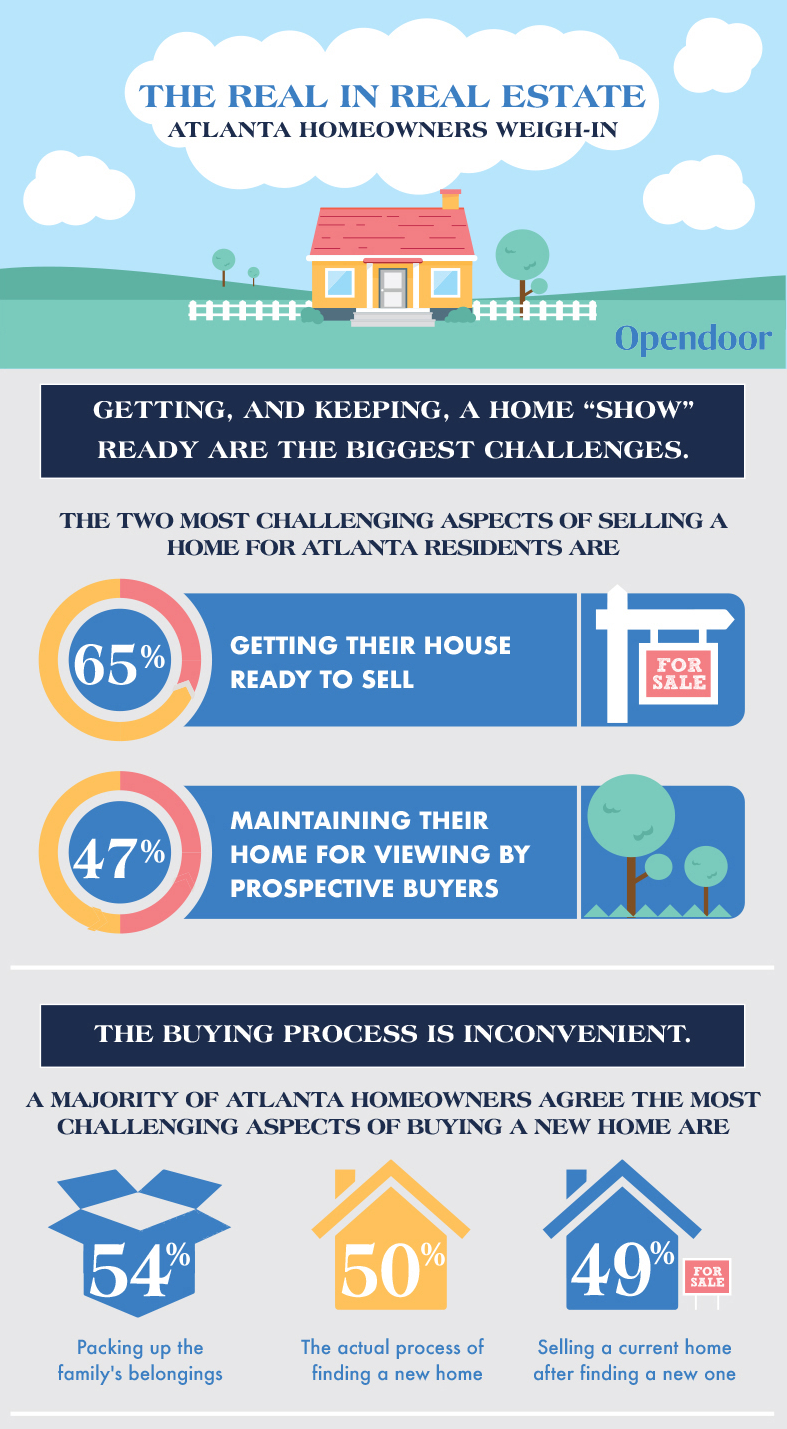 According to a new survey from Opendoor, 63 percent of Atlanta homeowners say the process of homebuying and homeselling is stressful, and 61 percent considered it time-consuming. Only 7 percent of Atlanta homeowners said the process of selling a home is easy, and nearly one in four said they would rather get a root canal than go through the process.