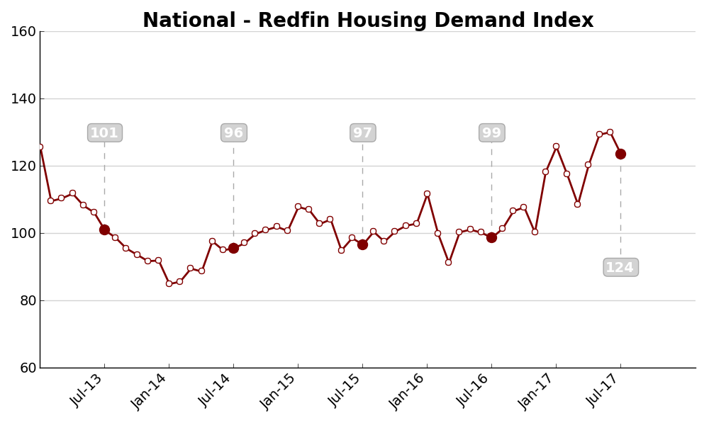 The U.S. housing market experienced a 1.7 percent drop in demand from September to October this year, according to the latest Redfin Demand Index, which is calculated by measuring home tour requests and writing offers of thousands of Redfin customers.