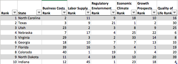 Over the past two years, Georgia has climbed five spots in the Forbes annual ranking of the best states for business. Analyzed across six categories — business costs, labor supply, regulatory environment, economic growth, climate prospects and quality of life — Georgia ranks No. 6 in 2017 with a gross state product of $496 billion.