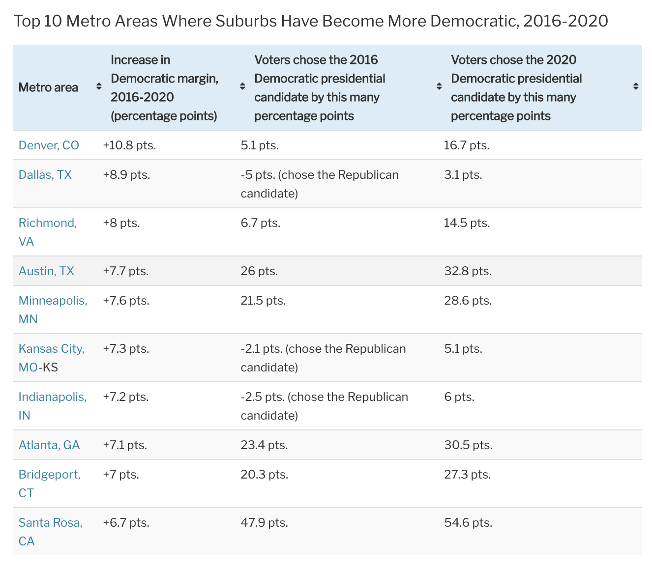 The report notes that Biden won the Atlanta suburbs by a 30.5 percentage-point margin, an increase of more than 7 percentage points from the 2016 Presidential election.