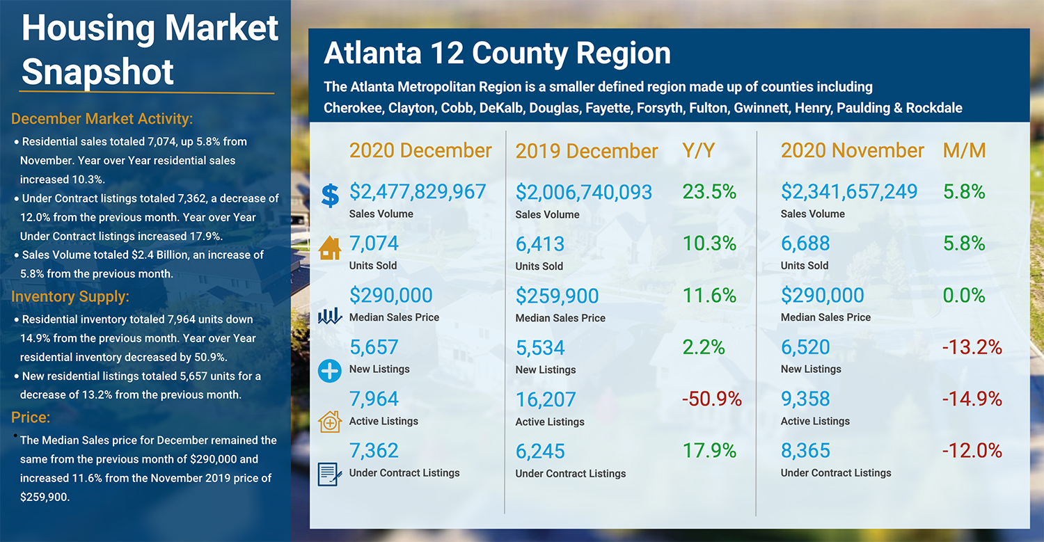 Think December is a slowdown month for home sales? Well, don’t let Atlantans know because residential sales climbed 5.8% from the previous month in the 12-county region that makes up the Atlanta metro area, according to Georgia MLS.