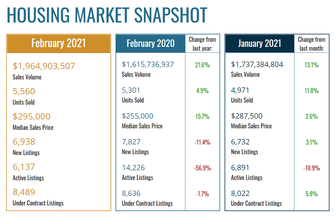 Overall, the Atlanta area saw 5,563 homes sold, up 4.9% from February 2020, according to the Housing Market Snapshot.