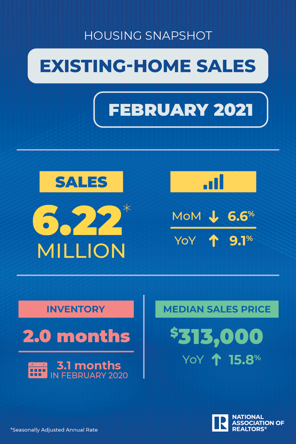 “Despite the drop in home sales for February — which I would attribute to historically-low inventory — the market is still outperforming pre-pandemic levels,” Lawrence Yun, NAR’s chief economist, said in the press release. “I still expect this year’s sales to be ahead of last year’s, and with more COVID-19 vaccinations being distributed and available to larger shares of the population, the nation is on the cusp of returning to a sense of normalcy,” Yun said. “Many Americans have been saving money and there’s a strong possibility that once the country fully reopens, those reserves will be unleashed on the economy.”