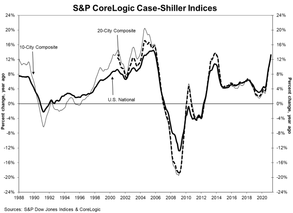 The S&P CoreLogic Case-Shiller U.S. National Home Price NSA Index shows a 13.2% year-over-year price gain in March.
