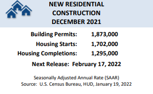The seasonally adjusted annual rate for privately owned housing units authorized by building permits was at 1,873,000 in December, up 9.1% from November and 6.5% compared to a year earlier.