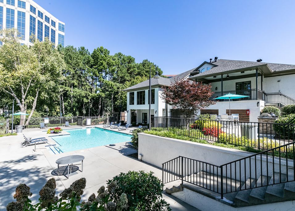 The community offers one- and two-bedroom units with granite countertops, stainless-steel appliances and patios or balconies. Common-area amenities include a saltwater swimming pool, dog park, coffee and tea bar, fitness center with yoga studio, game room and car-charging stations.