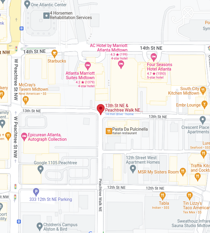 Midtown Exchange will be located on 12th and 13th streets and Peachtree Walk. Courtesy of Google Maps.