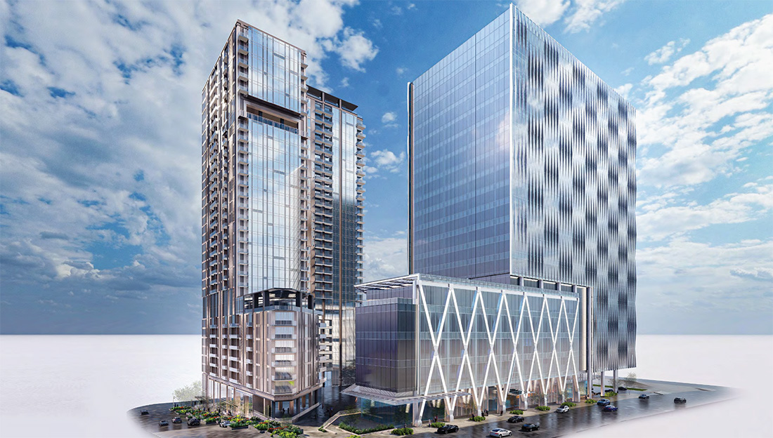 Selig Development and RJTR architects recently unveiled proposed designs for a pair of high-rise towers that would bring 465 apartments and more than 600,000 square feet of office space to Midtown.