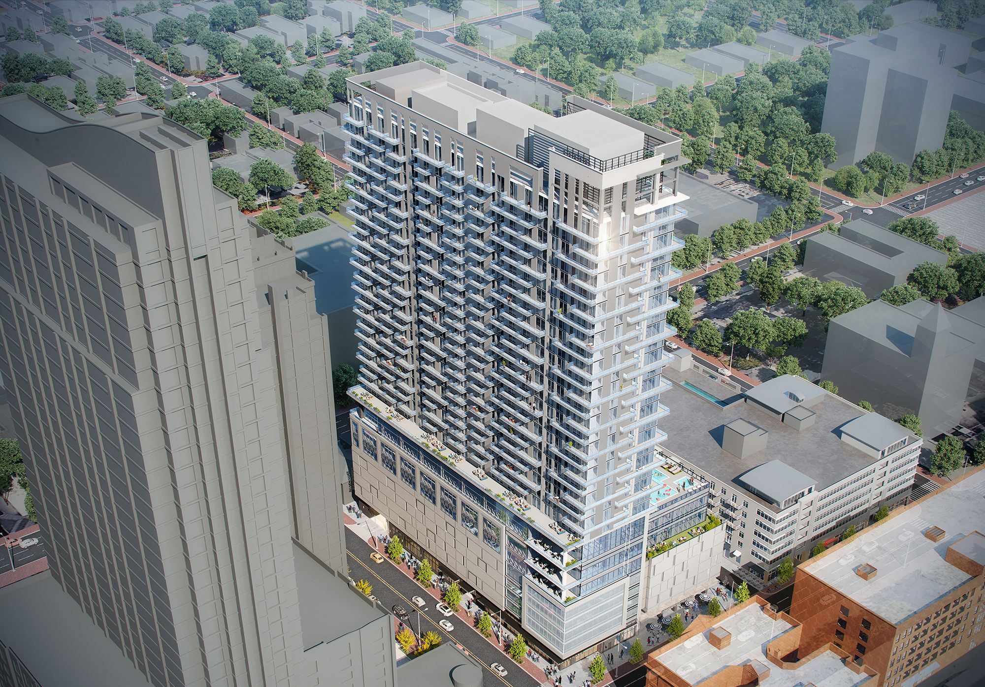 Community amenities will include a rooftop pool and restaurant, a “massive” co-working lab with private conference rooms and a modern gym and fitness studio,
