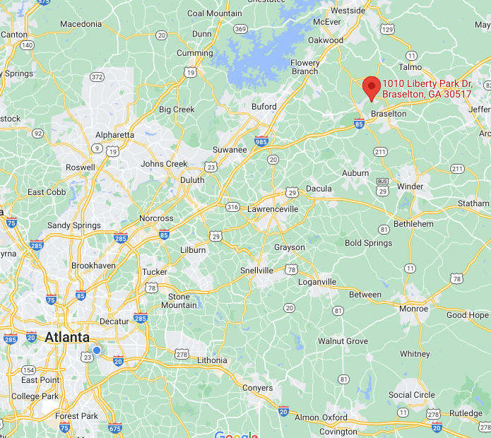 The gated, master-planned community is located at 1010 Liberty Park Drive in Braselton. Courtesy of Google Maps.