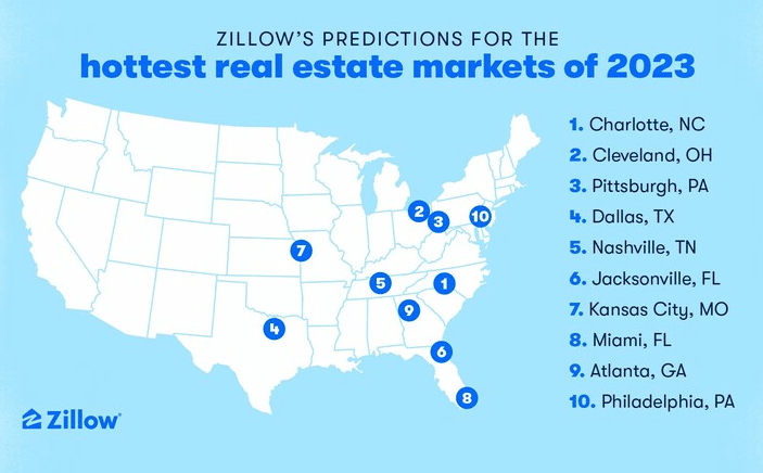 Zillow’s top 10 markets for 2023 are: