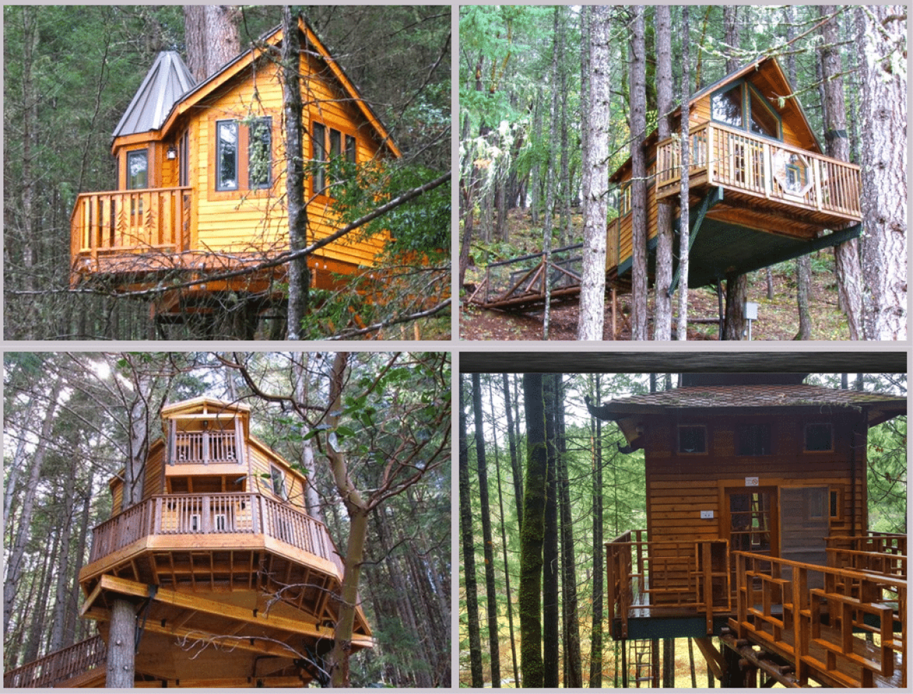 Vertical Horizons Tree House Paradise, which includes four tree houses fixed amongst the scenic Douglas firs, is up for sale.