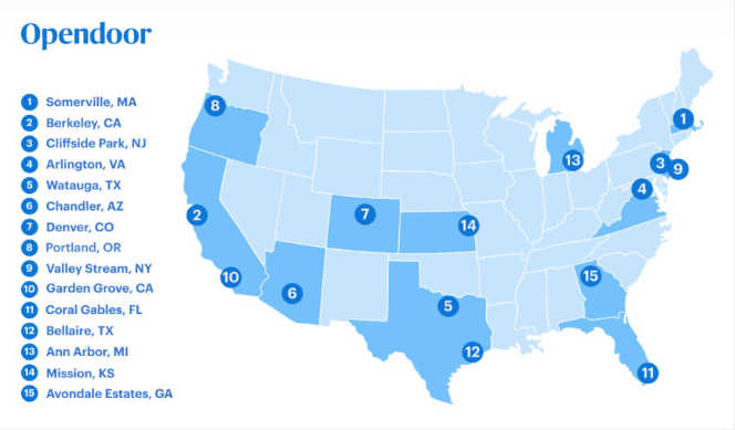 Opendoor identified the best cities for families by analyzing and averaging the number of OpenStreetMap “family friendly” tags within 3 miles of all addresses in a city where Opendoor Brokerage operates. The tags include bench, community center, drinking water, garden, kindergarten, museum, park, picnic site, playground, school, swimming pool, supermarket and waste basket.