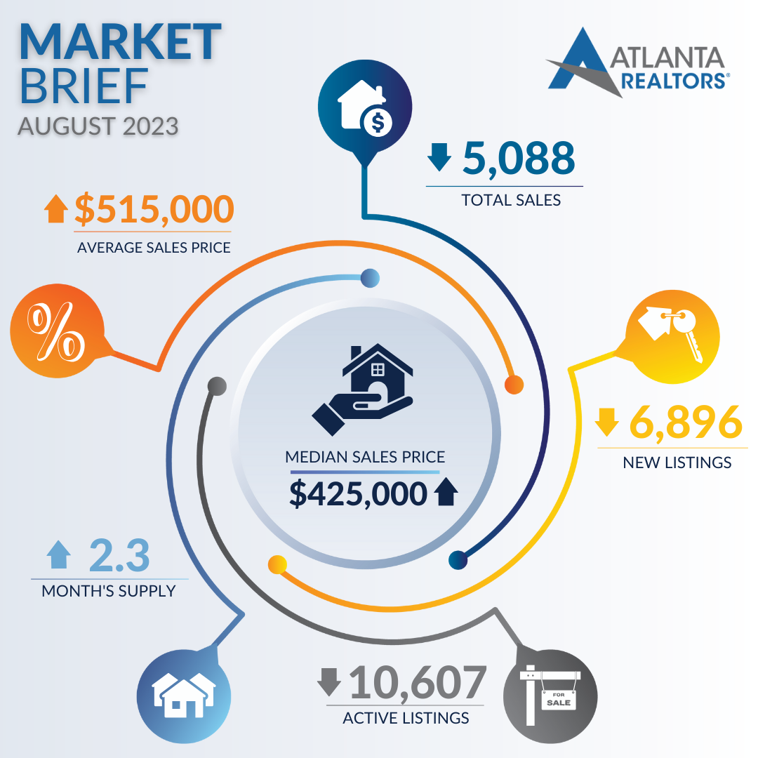 The median sales price for an Atlanta home remained in positive territory for the second month in a row in August, jumping 4.7% year over year to $425,000, the Atlanta REALTORS® Association revealed in its latest Market Brief.
