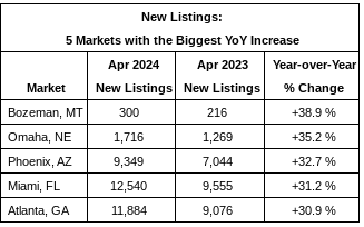 The market saw a 30.9% year-over-year jump in new inventory, which rose from 9,076 homes in April 2023 to 11,884 last month.