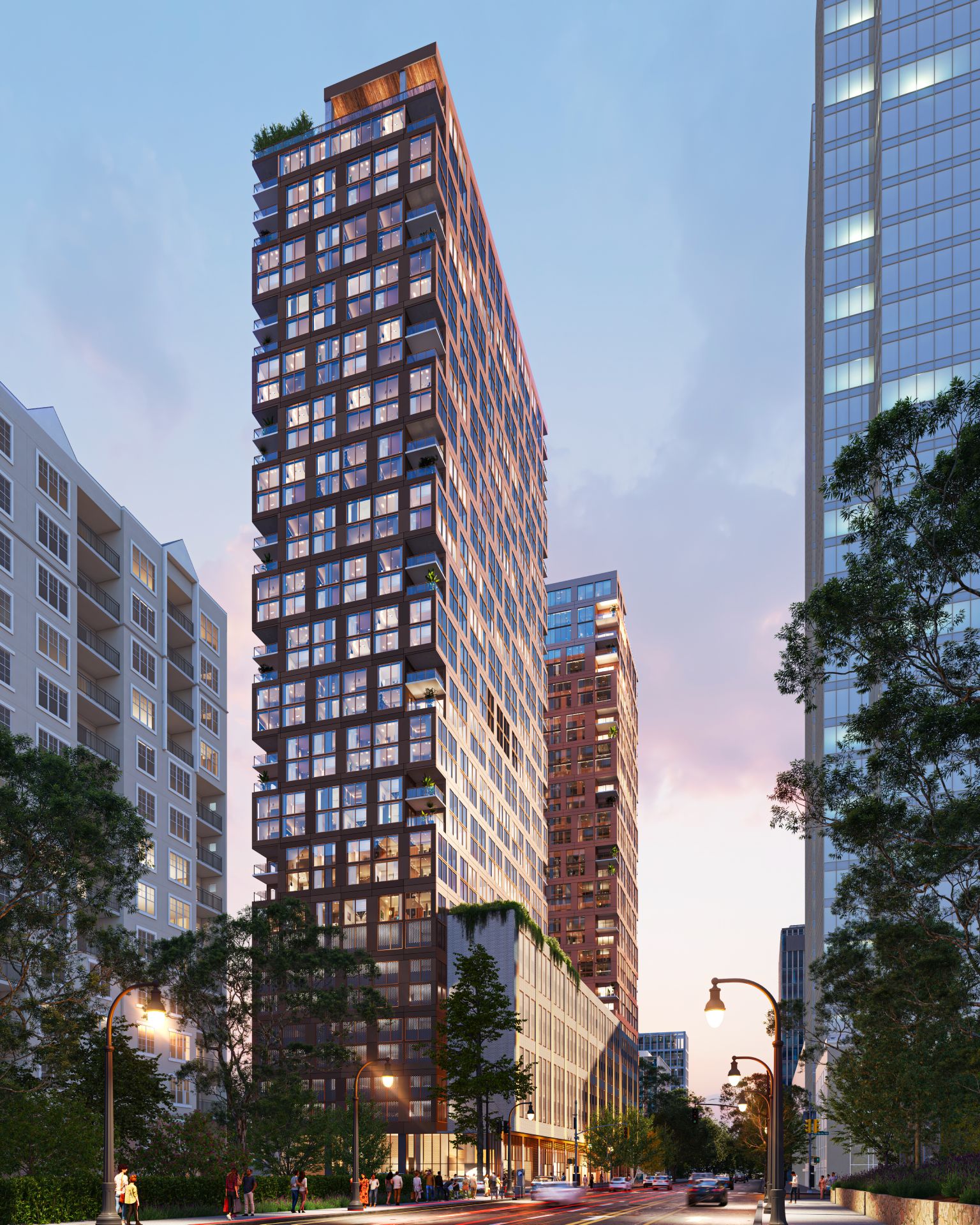 The taller of the two towers will be called The Juniper and offer 320 apartments over 37 stories, while the other tower will be called The Reserve at Juniper and bring a “boutique collection” of 167 apartment homes over 34 stories. Previous updates from the developers — Middle Street Partners and AECOM-Canyon Partners — put the buildings at 36 and 33 stories, respectively.
