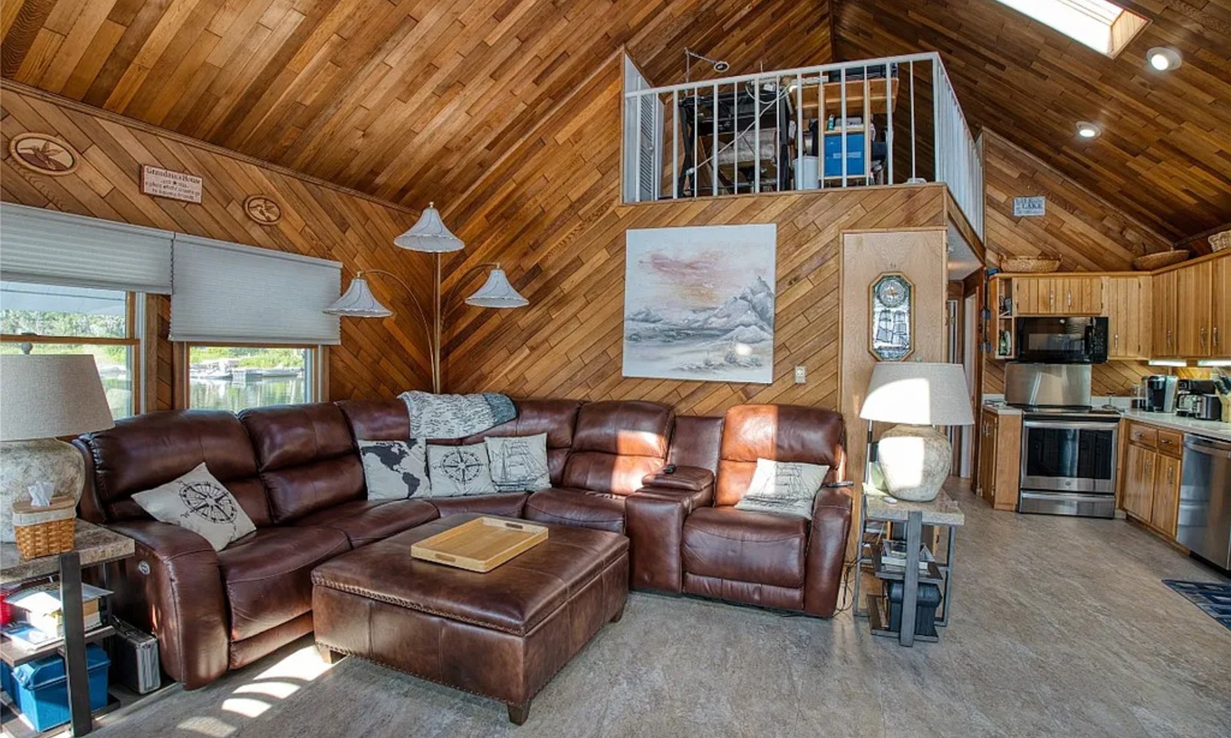 The home is listed by Jake Scheloske and Tim Pagano of Agresti Real Estate for $359,000 — and since it’s not technically on land, there’s no real estate taxes.