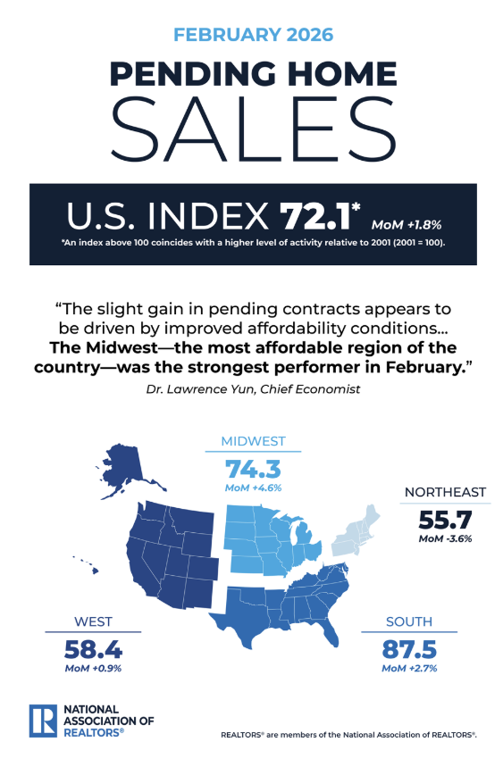 “The slight gain in pending contracts appears to be driven by improved affordability conditions. However, those conditions could reverse if higher oil prices lead to an uptick in mortgage rates,” NAR Chief Economist Lawrence Yun said. “The Midwest — the most affordable region of the country — was the strongest performer in February. But the Northeast was held back by a combination of higher home prices and a shortage of supply.”