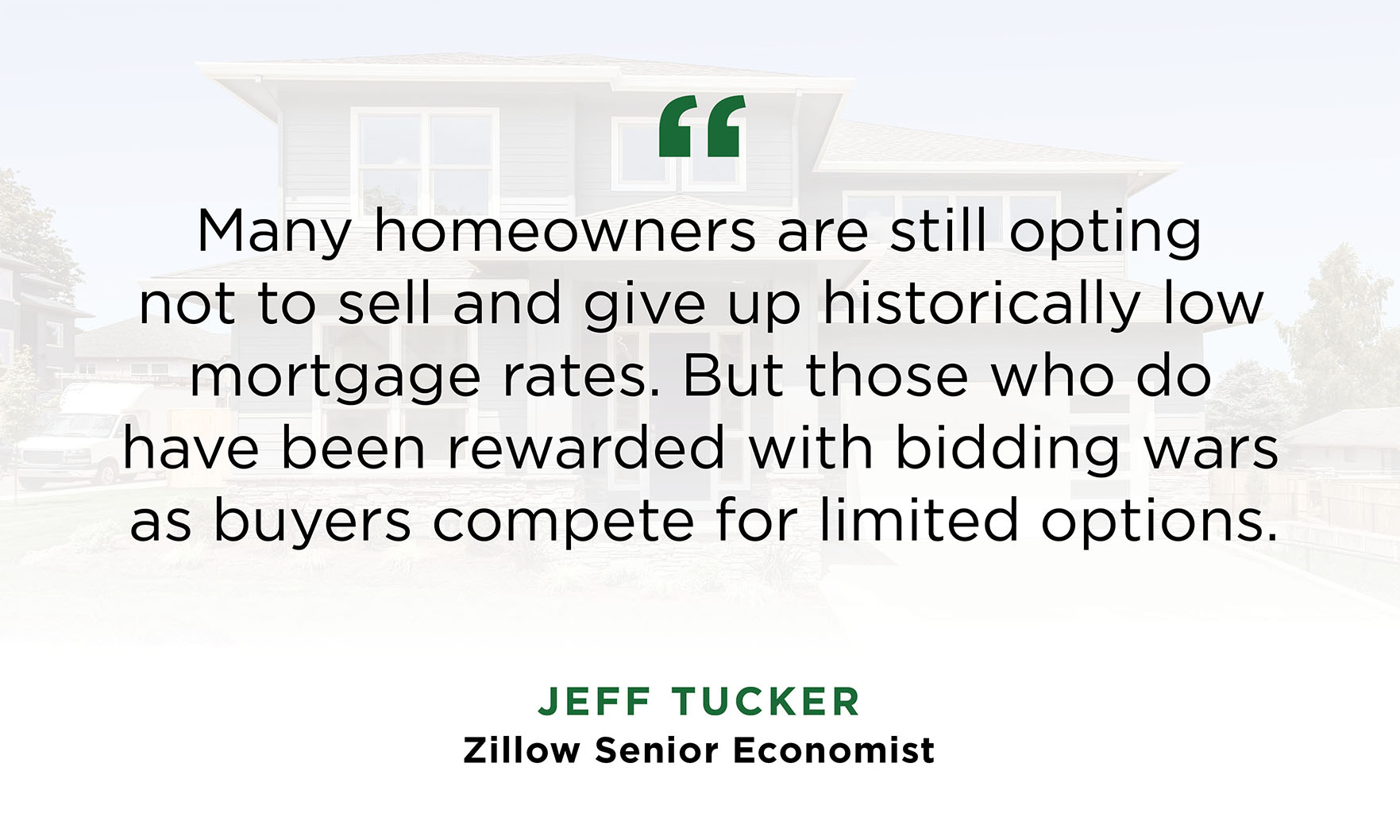 Homebuyer competition is driving up prices, as inventory constraints continue to plague the real estate market.