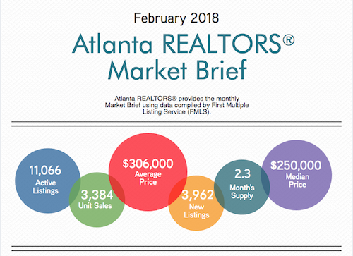 Source: Atlanta Realtors Home sales in Atlanta started off on a softer note, according to the January 2018 Market Brief from the Atlanta Realtors Associations. In January, 3,013 homes were sold, down 4 percent from 3,140 homes last January
