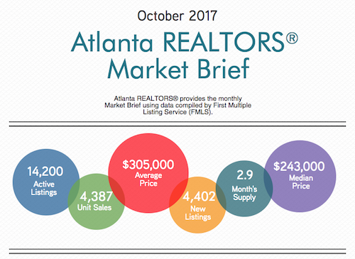 Source: Atlanta Realtors Association Although Atlanta home sales are heading into the fall slowdown, October sales are still up compared to this time last year, according to the Atlanta Realtors Association. October 2017 residential sales were at 4,387, which