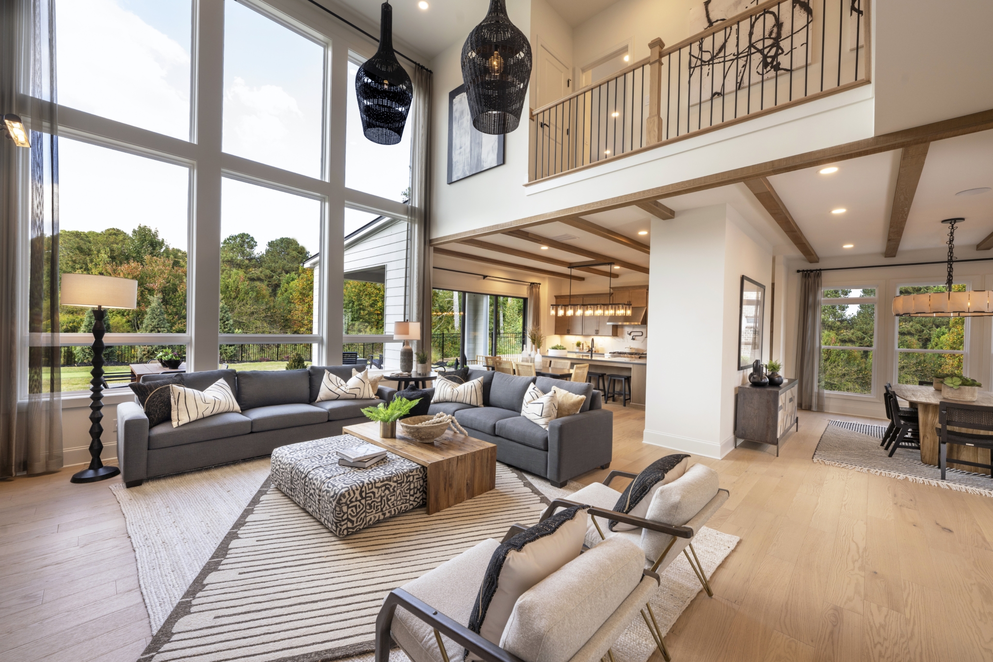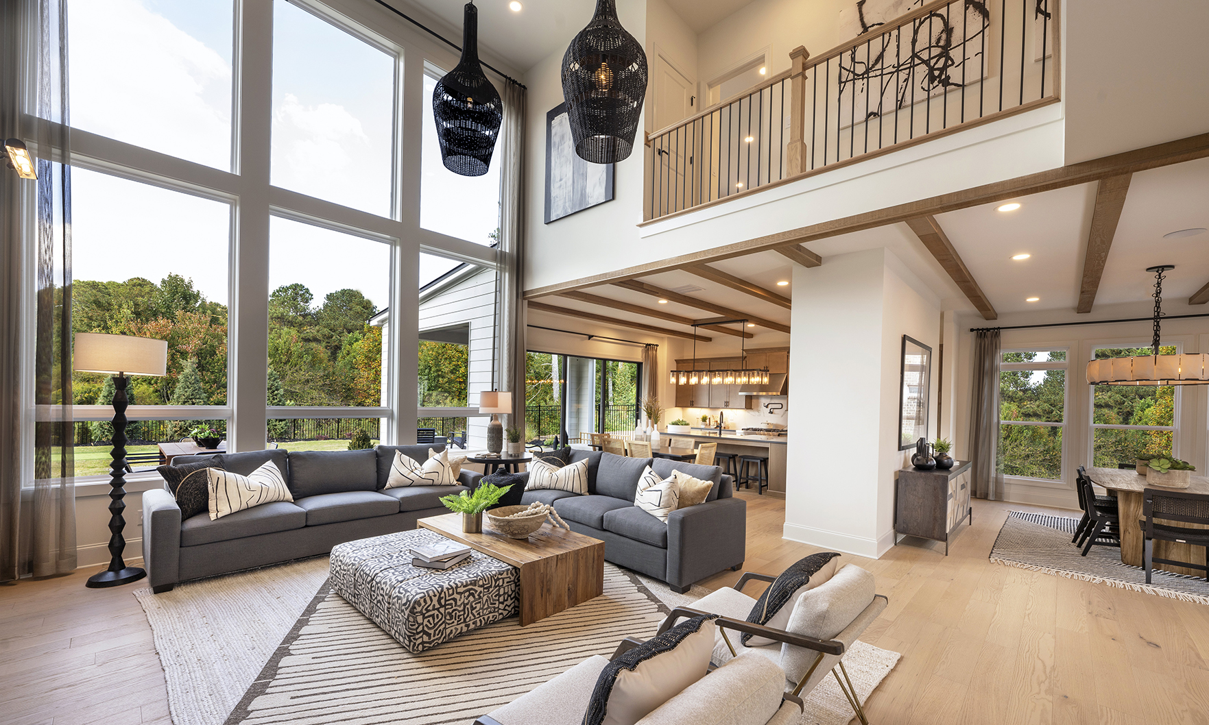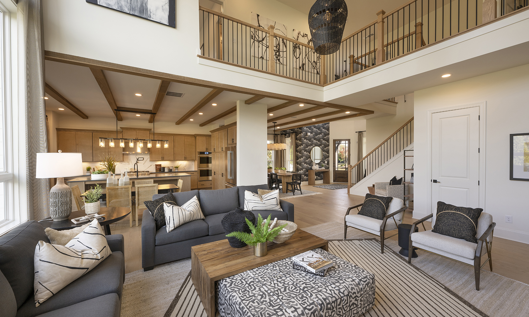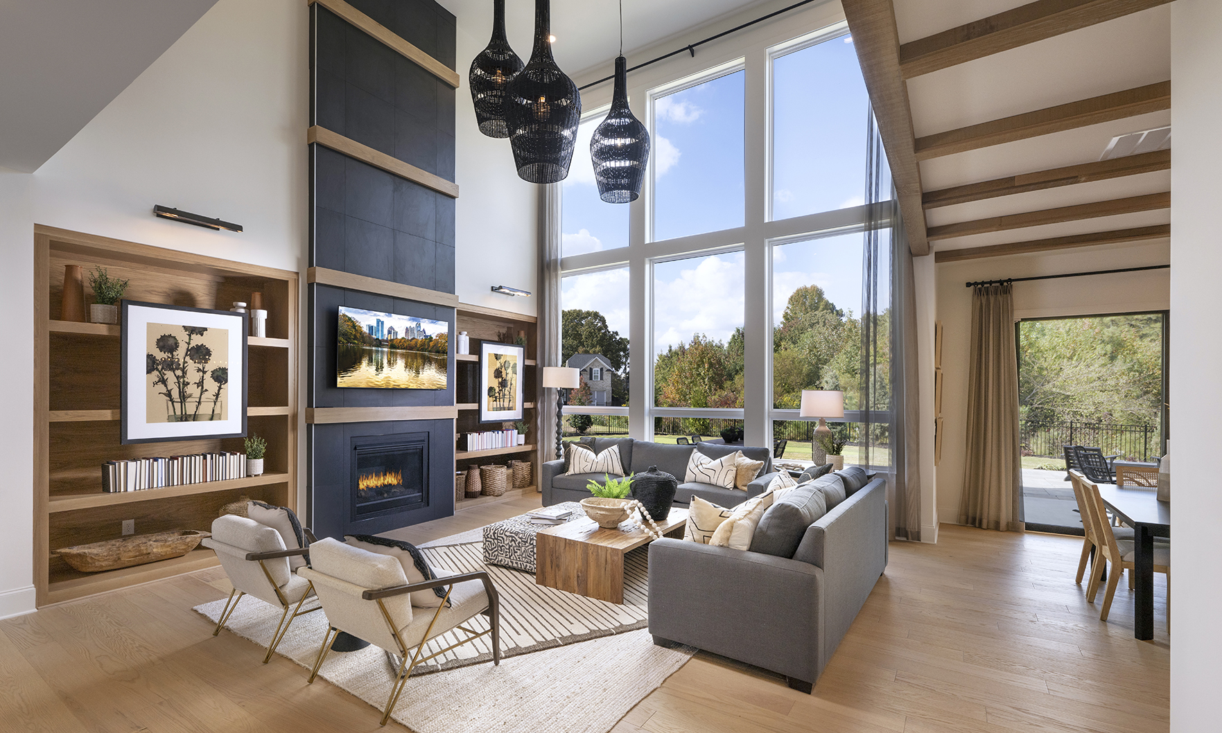 Stunning decorator options can be found throughout this spacious contemporary home, designed for your family’s comfort and enjoyment. Overlooking the desirable covered deck is the well-equipped kitchen, enhanced by a grand center island with upgraded cabinets and KitchenAid appliances. This versatile design offers a main level with a large guest suite with full bathroom, a private study and a separate formal dining room. Embrace relaxation in the sun-filled, two-story great room with an upgraded linear window wall and tile fireplace surround extending to the ceiling. Unwind in your personal retreat, a primary bedroom with sitting room and a luxury primary bathroom featuring a large shower and freestanding soaking tub.
