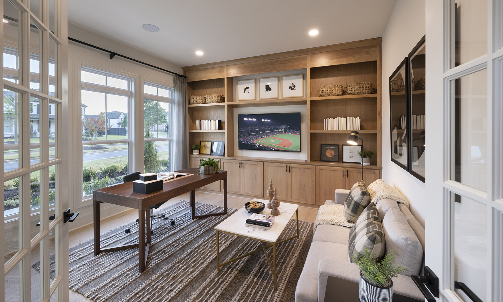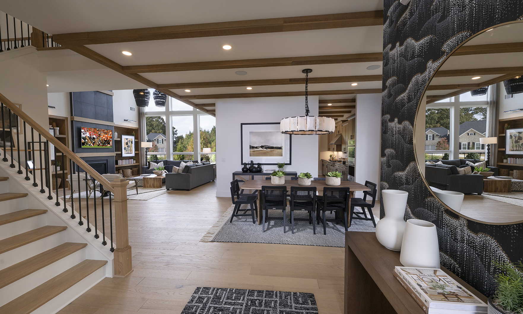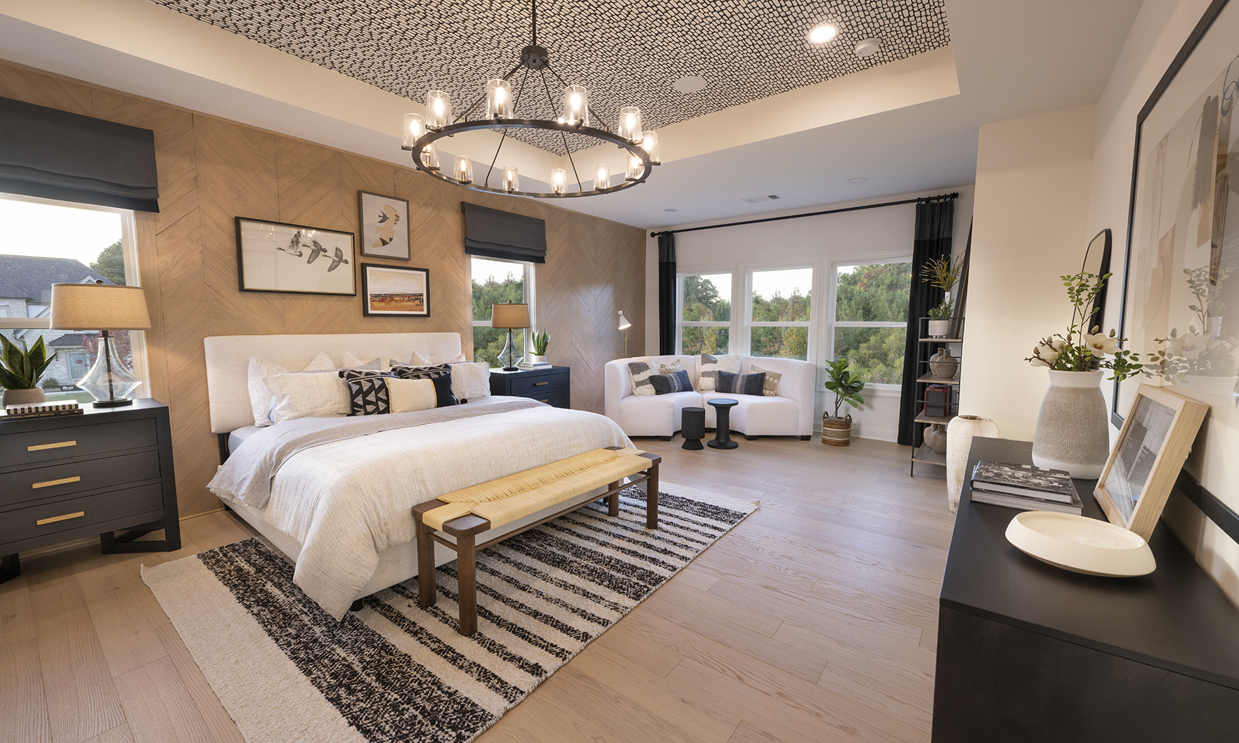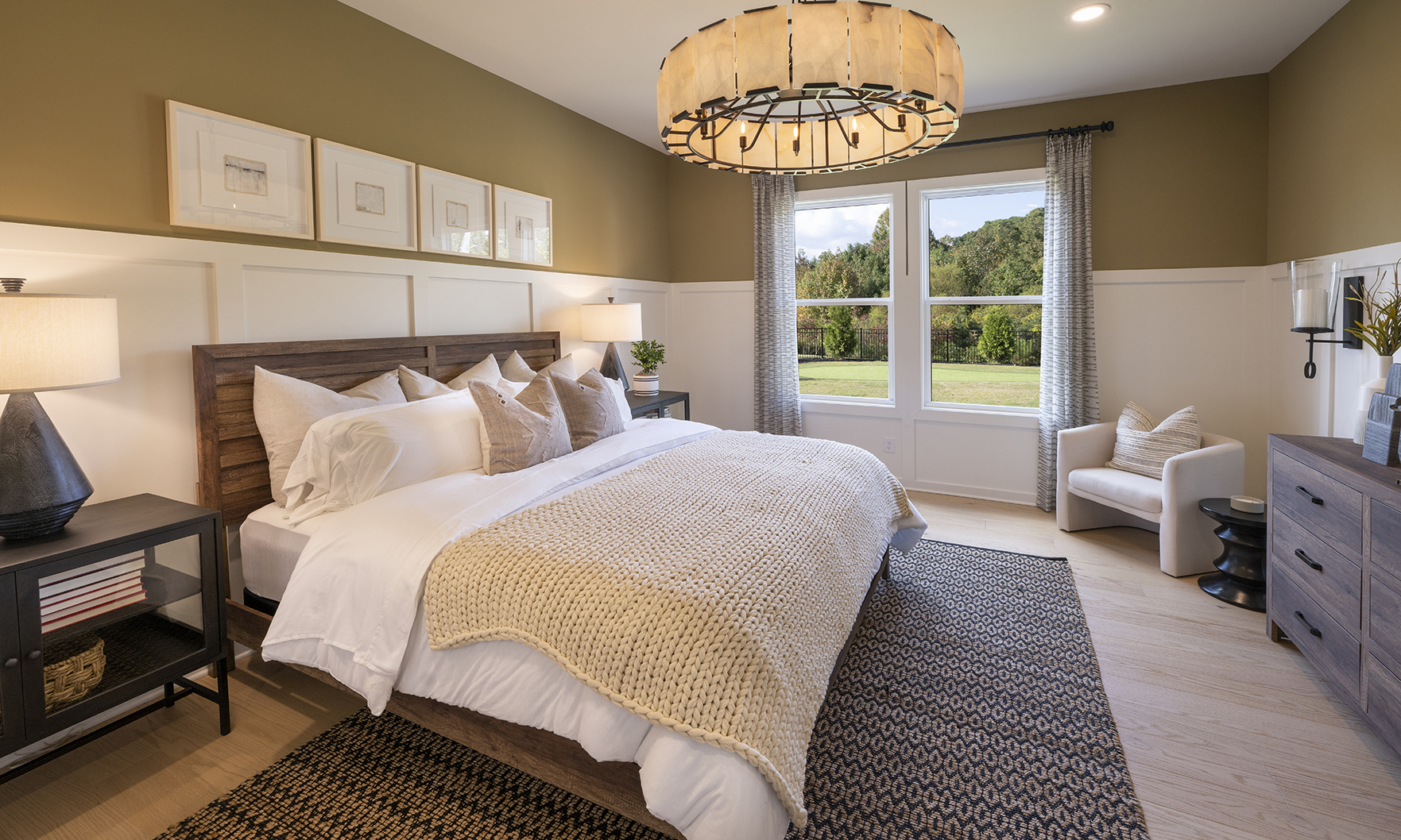 Stunning decorator options can be found throughout this spacious contemporary home, designed for your family’s comfort and enjoyment. Overlooking the desirable covered deck is the well-equipped kitchen, enhanced by a grand center island with upgraded cabinets and KitchenAid appliances. This versatile design offers a main level with a large guest suite with full bathroom, a private study and a separate formal dining room. Embrace relaxation in the sun-filled, two-story great room with an upgraded linear window wall and tile fireplace surround extending to the ceiling. Unwind in your personal retreat, a primary bedroom with sitting room and a luxury primary bathroom featuring a large shower and freestanding soaking tub.